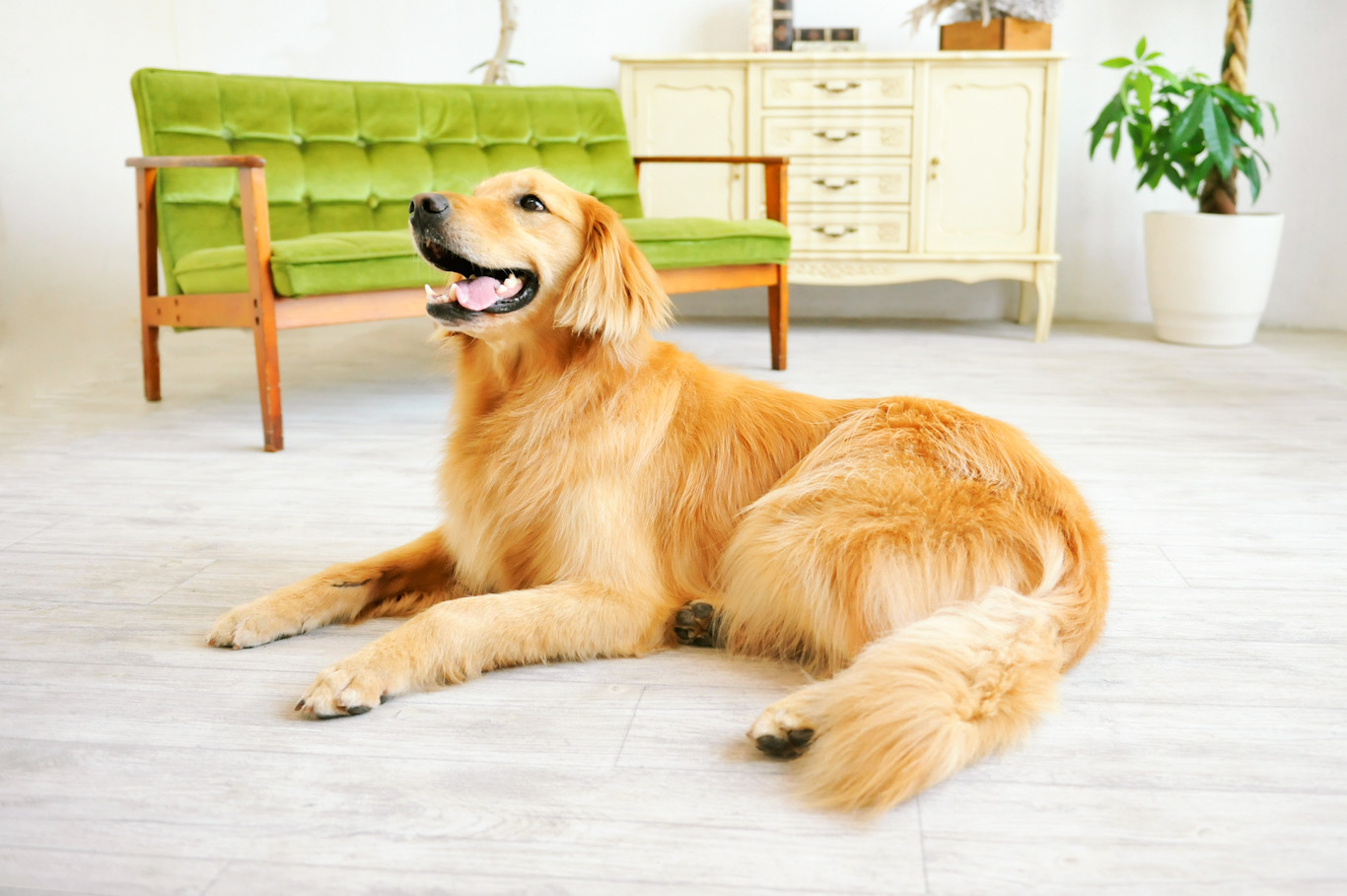 部屋の半分をロボフロアー敷きにしてワンコスペースが広くなりました!手術を終えたメイがトイレが分からずロボフロアーにおしっこしてしまいましたがお手入れも楽で臭いもなかったです。