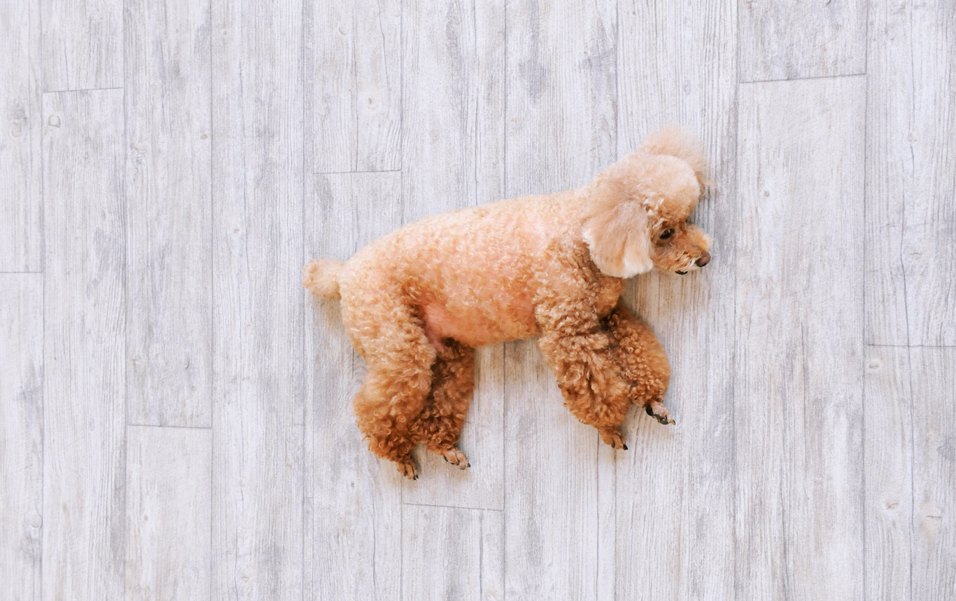 可愛いトイプードル3頭と暮らされているK様。その中のメイちゃんの後ろ脚関節が悪く今回手術を受ける事になったとお伺いしました。イベントで見て触って確かめて下さりロボフロアーを敷いてみたいとおっしゃいました。手術までは発砲クッションを部分的に敷いてメイちゃんの行動を制限されていましたが他の2頭同様に動き回って、つるつる滑るフローリングの方に行くこともあり心配されていました。
